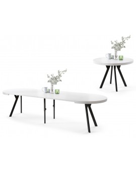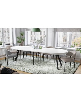 De EXPANSO-tafel is de perfecte combinatie van praktisch nut en modern design. Dankzij het slimme ontwerp met een tafelblad dat uitloopt op synchrone rails en extra inzetstukken, kan de tafel eenvoudig worden verlengd tot een indrukwekkende lengte die comfortabel plaats biedt aan 10-12 personen. Het is een ideale oplossing voor zowel alledaagse maaltijden als grotere familie- of sociale bijeenkomsten.