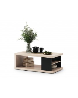 Konferenčný stolík VIENNA 2S Biela Matná/Čierna - STOLÍK SO ZÁSUVKAMI S REBROVANÝM ČELOM